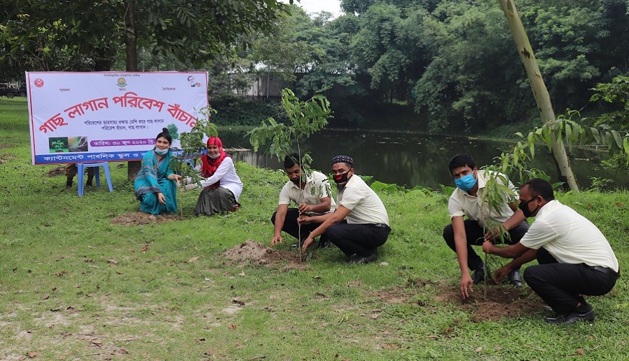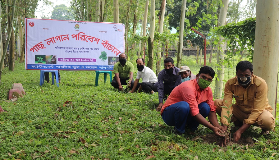 With the slogan ‘Green Trees & Serene Environment will make Bangabandhu’s Bangladesh’ a tree plantation programme was held on the Cantonment Public School and College Lalmonirhat adjoining area. The Principal, Major Mohammad Tanvir Hasan Chowdhury, AEC, teachers and staffs celebrated the program with huge jubilance by planting a shawl seedling at around 09:00 am beside the Administration Building.