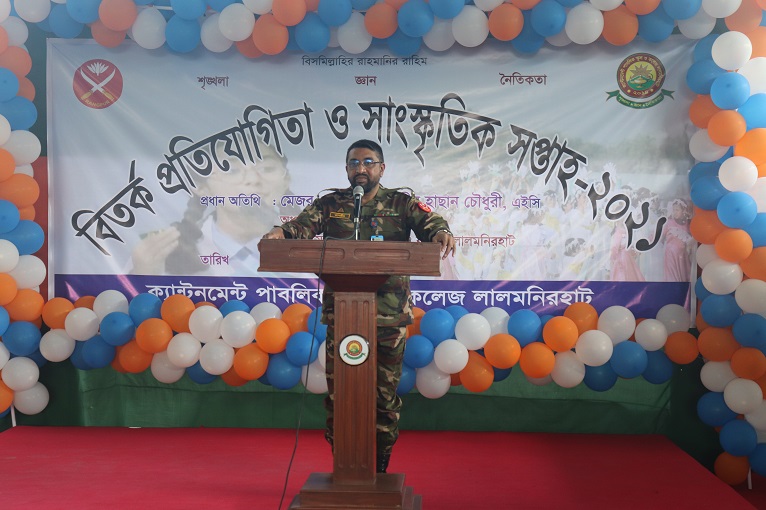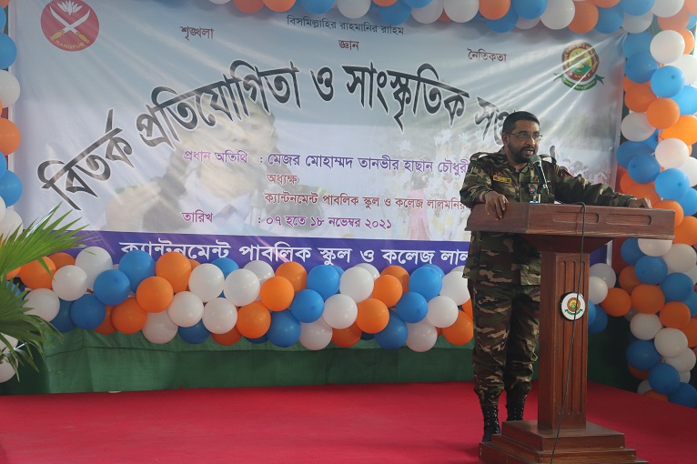 A 7 days Cultural Week -2021 has been held at Cantonment Public School and College Lalmonirhat with the participation of Students on 7th to 18th November 2021. In this Cultural Program Students participated in Bangla & English Debate, Chess, Drawing, Singing Competition , Dances, Extempore speech, Hamd-nat etc. There are around 250 students participated in different events and around 90 students got awards.